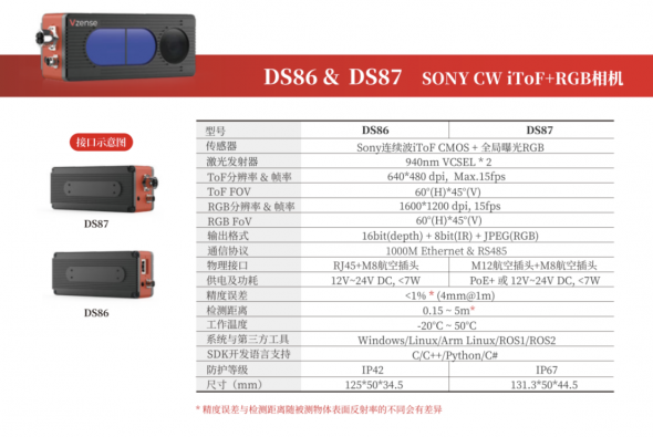 瞄準AGV/AMR領域-維感科技發布高性價比RGB-D ToF相機DS86/87