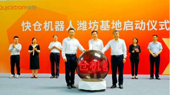 2023年6月,快倉智能機器人濰坊生產基地正式啟動儀式??靷}智能機器人濰坊生產基地項目由濰城投集團引導、落地,承載著叉車式、料箱式等2類智能機器人產品的生產。達產后預計年產能超萬臺,年產值超5億元。