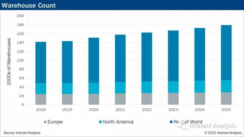 截至2020年底,15萬(wàn)個(gè)倉(cāng)儲(chǔ)遍布全球,占地約250億平方英尺。疫情以及發(fā)展中地區(qū)人們對(duì)于消費(fèi)品的需求推動(dòng)了人們選擇線上購(gòu)物,因此未來(lái)五年需要增加28500個(gè)倉(cāng)儲(chǔ)中心。這些新倉(cāng)儲(chǔ)中有相當(dāng)一部分是直面消費(fèi)者的配送中心,這些配送中心需要投資大量勞動(dòng)力和自動(dòng)化設(shè)備。