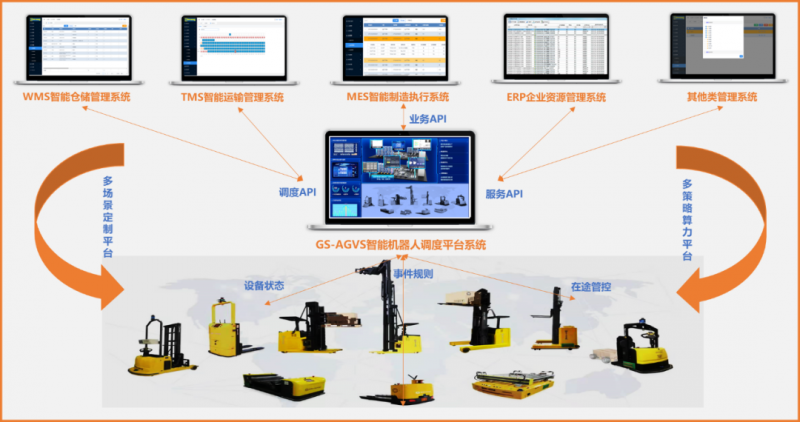 井松智能研發的場景化流程化定制化的智能調度系統平臺,實現多系統兼容對接、多任務一鍵齊發、多策略自定義適配,完美匹配客制化、多樣性需求目標。