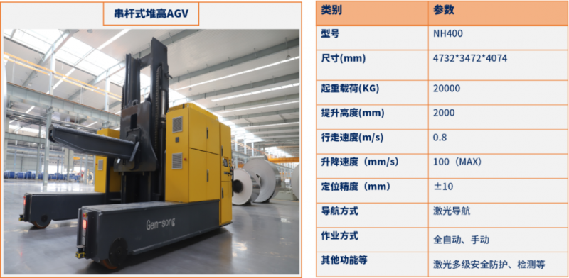 超重載(20噸級+)串桿式堆高叉車AGV產品是由客制化AGV本體、智能識別系統、智能調度系統、智能監控系統等軟硬一體化相結合的智能系統產品。